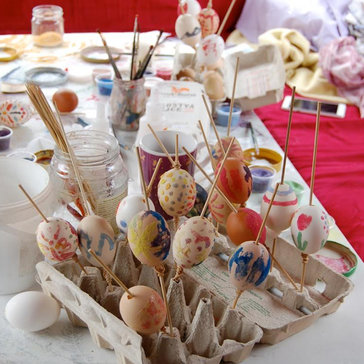 Tři vajíčka níže jsou dílem výtvarnice Markéty Kotkové.
