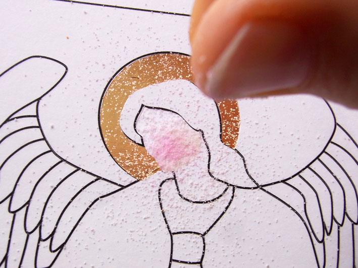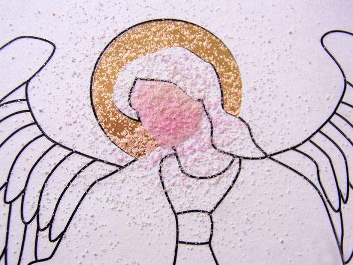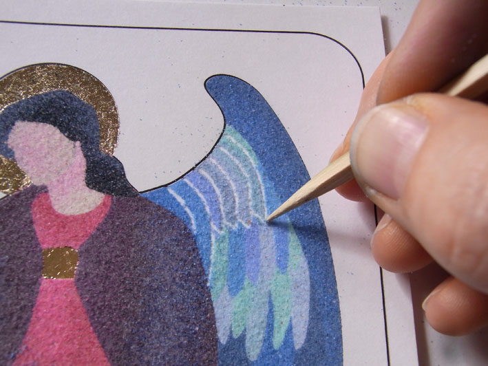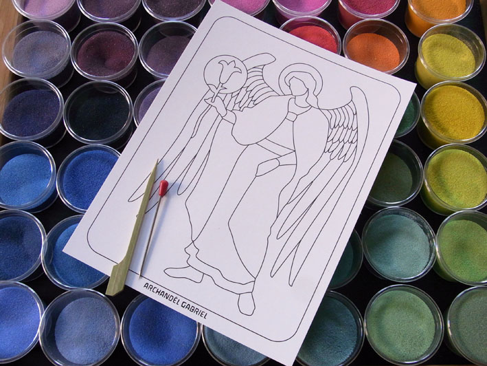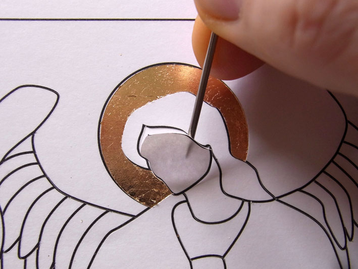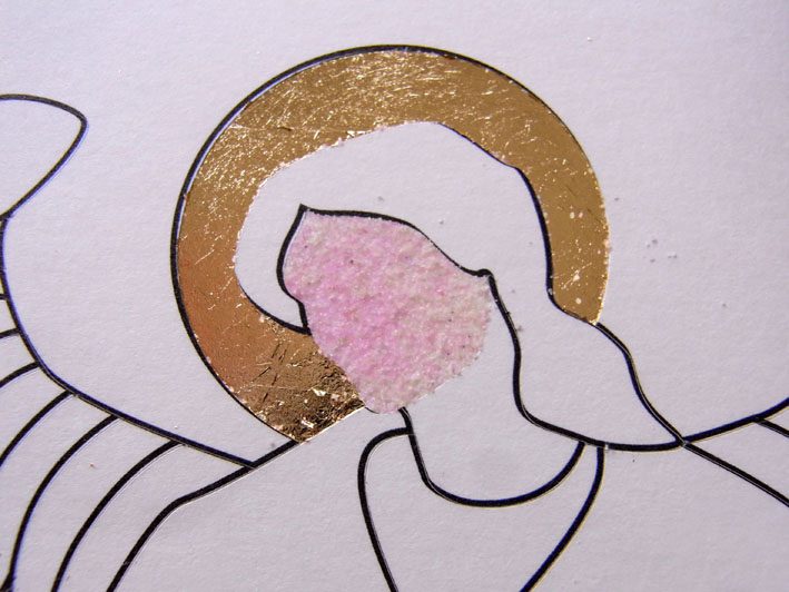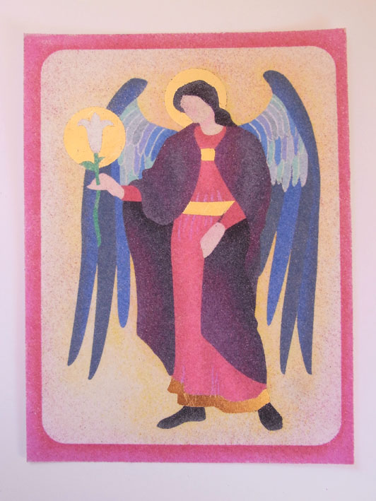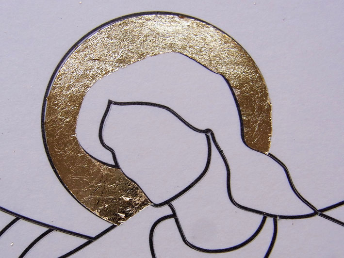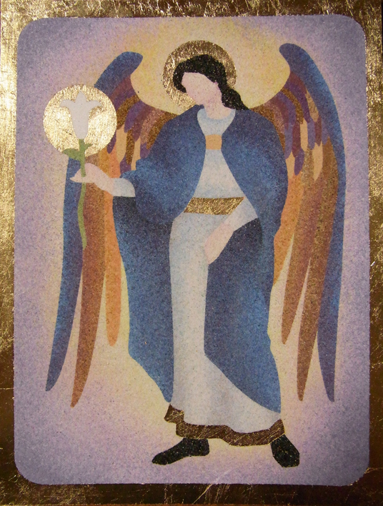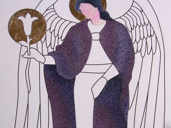 4 předřezané obrázky A5 20 x 15 cm s motivy: Cesta do Betléma, Anděl Gabriel, Anděl Michael,