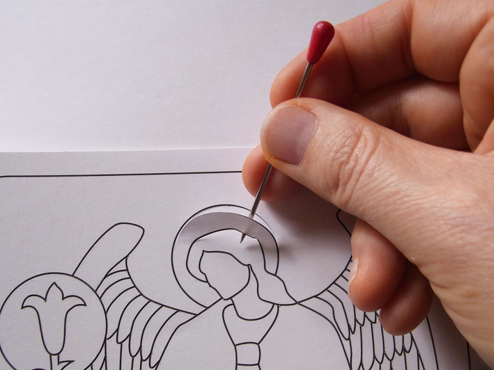 Tři králové nebo Madona a 3 hvězdy 10 x 10 cm. Špendlík a dřívko na dokreslování detailů.