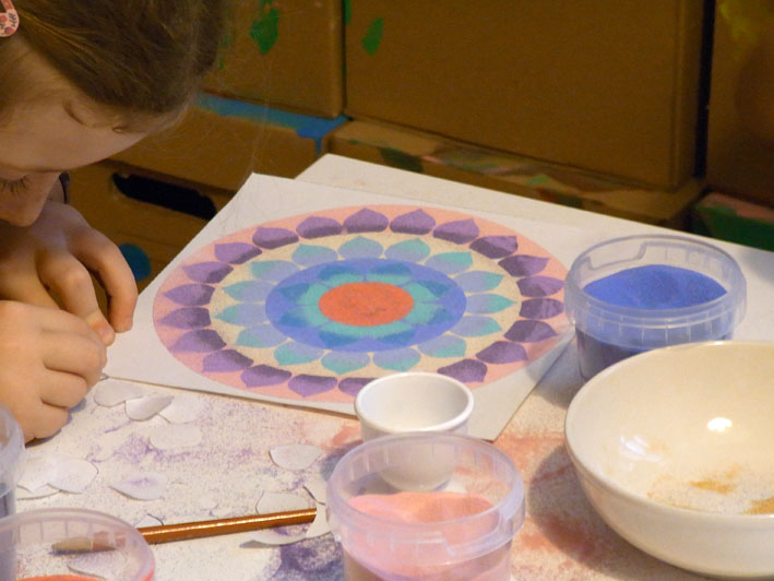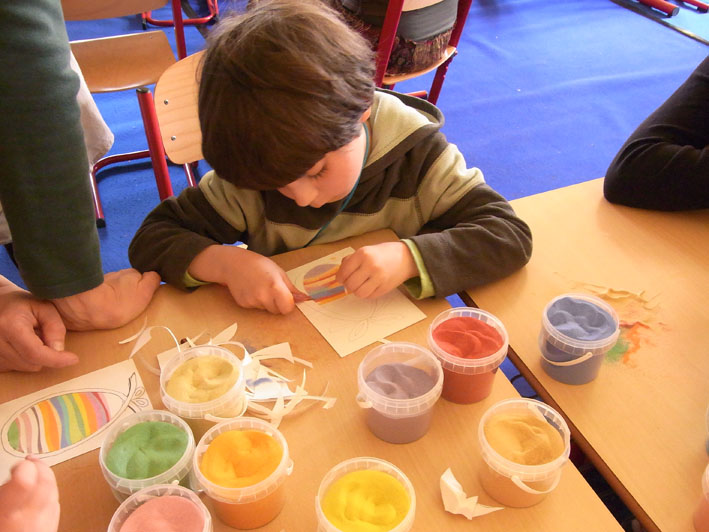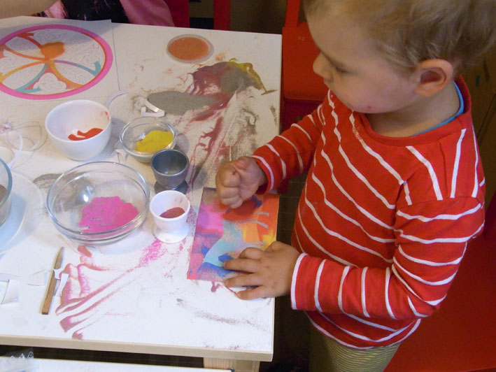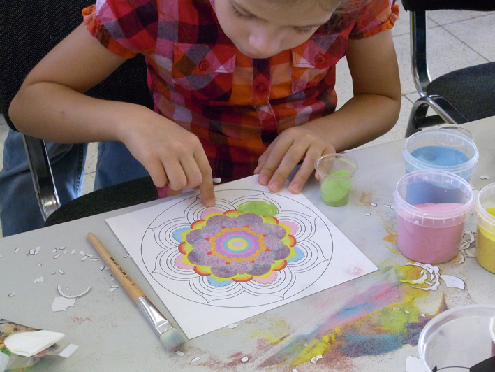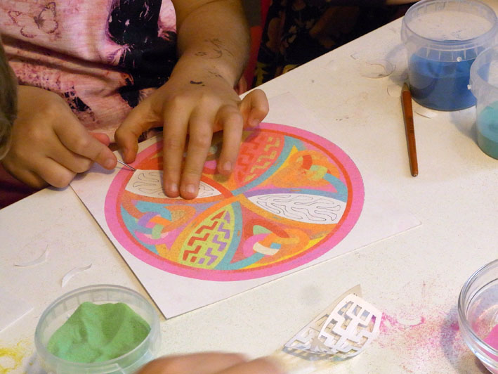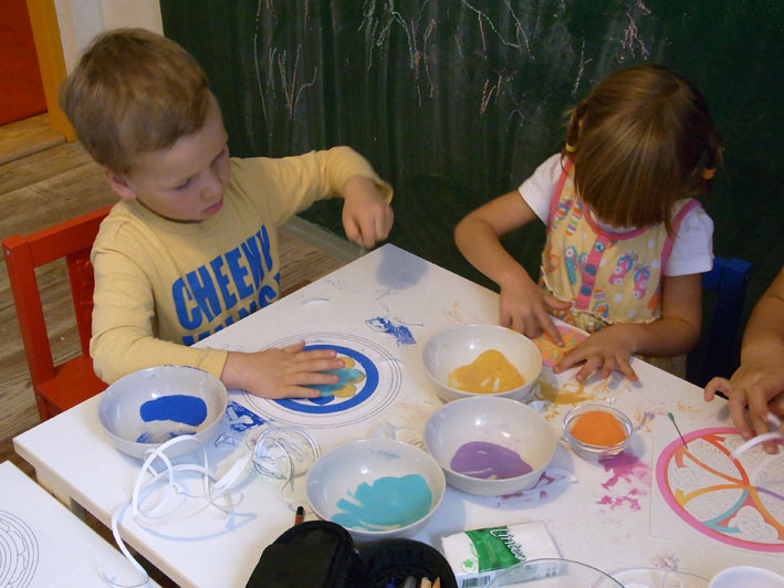 Technika vysypávání obrázků pískem pomáhá dětem rozvíjet jemnou motoriku prstů,